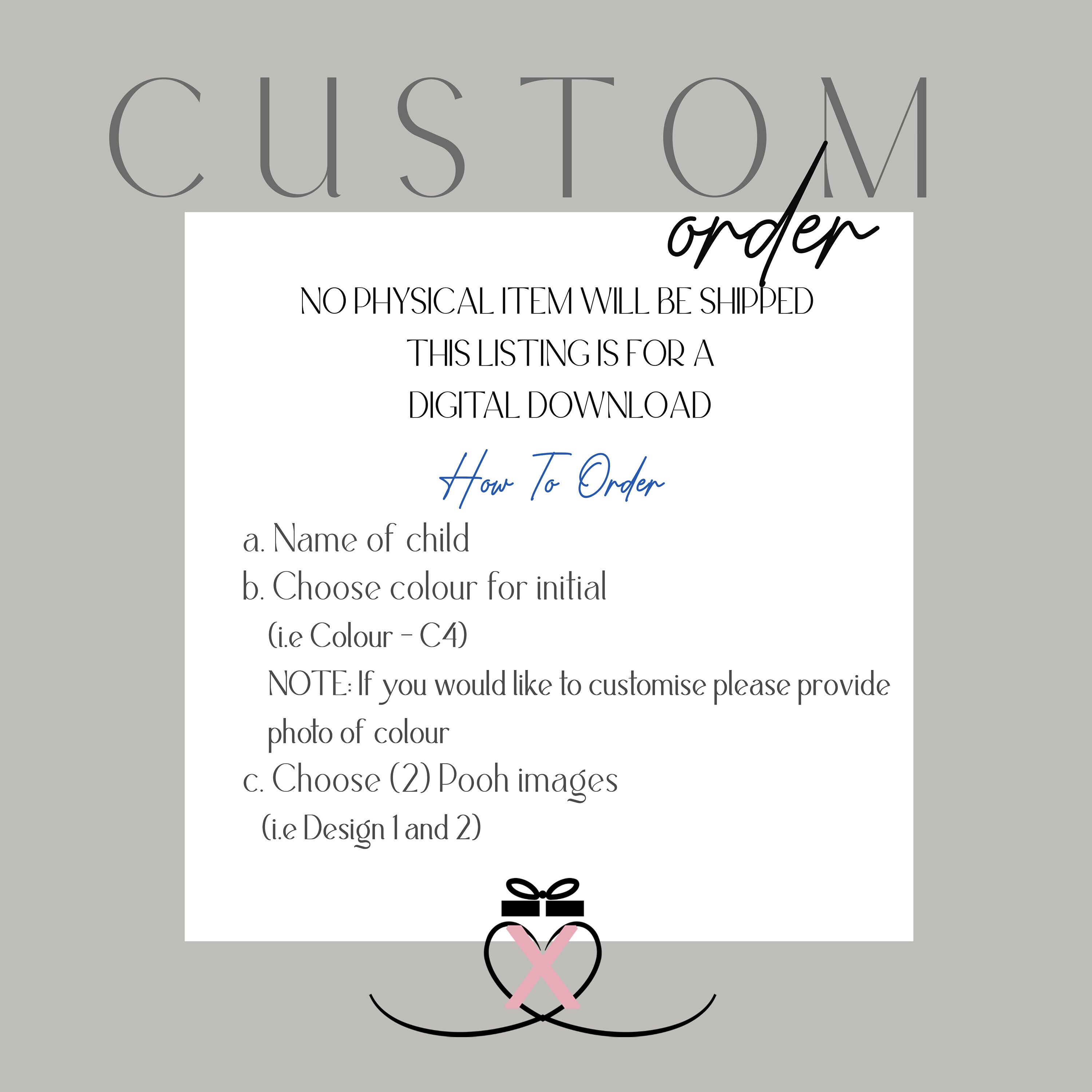 NOTE: If you would like to customise please provide