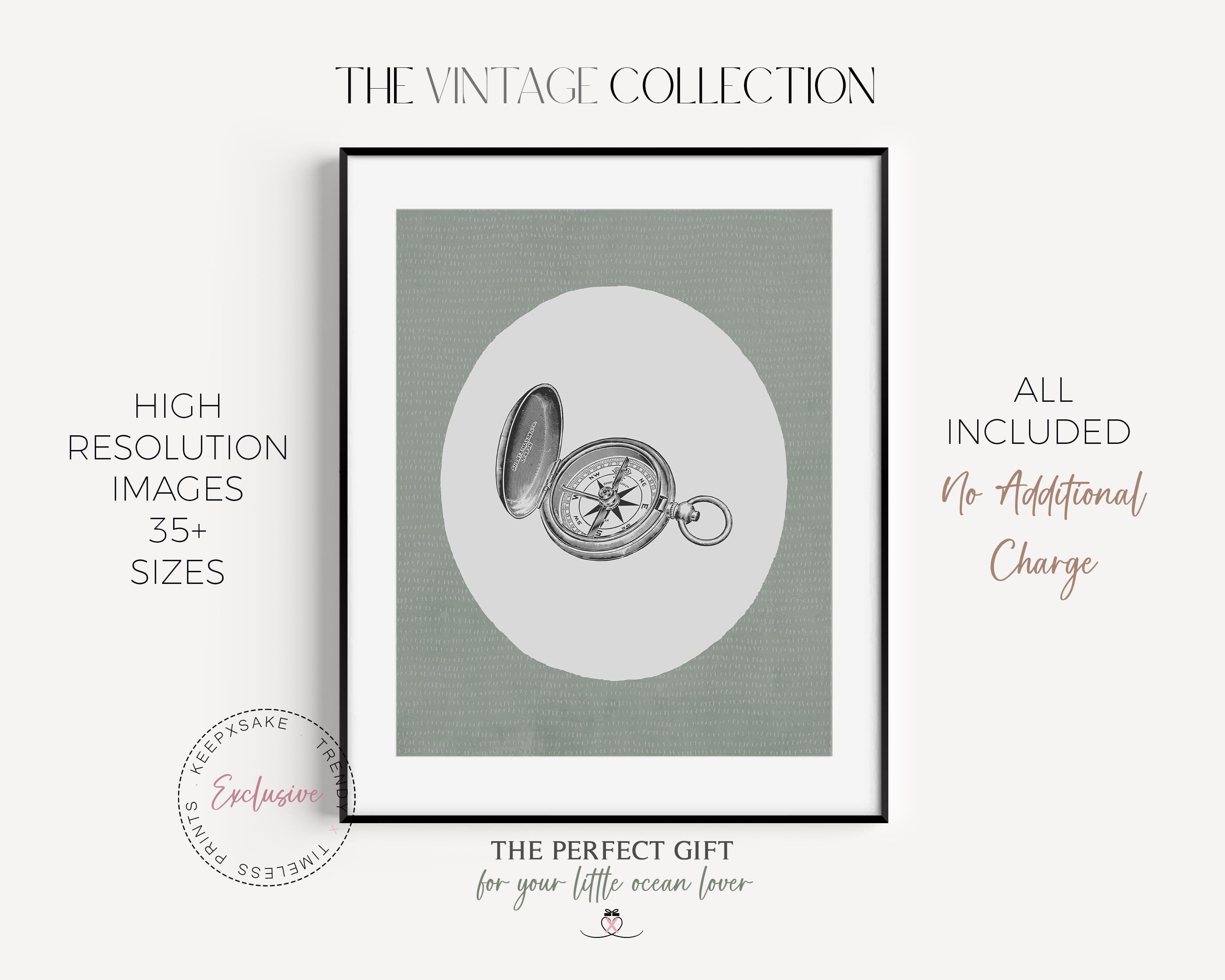 Sail into sweet dreams with this captivating Sage Green Vintage Nautical Wall Art Set of 6! Seamlessly blending vintage charm with a modern touch, this collection features timeless illustrations of a ship, whale, starfish, compass, lighthouse, and Victorian alphabet, all reimagined with soft sage green accents. Perfect for creating a serene coastal vibe, these printable art pieces bring a harmonious mix of classic elegance and contemporary style to your nursery or kids' room.
