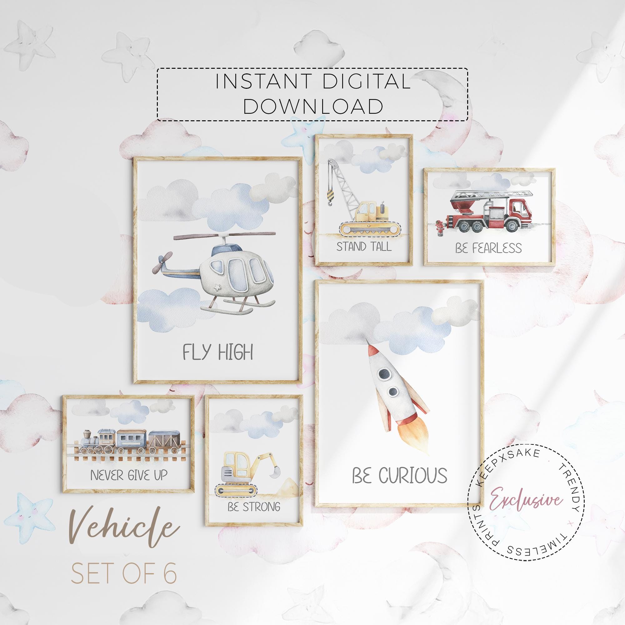 Exclusive Boys Vehicle Transportation Printable Wall Art (Set of 6)