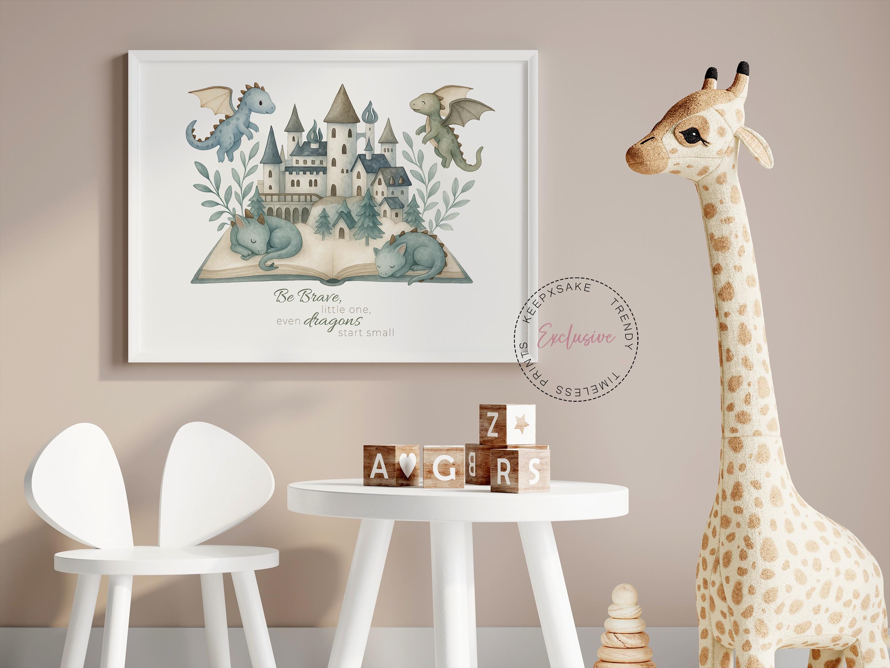 Inspire bravery and imagination with this “Be Brave Little One” Dragon Wall Art Print.