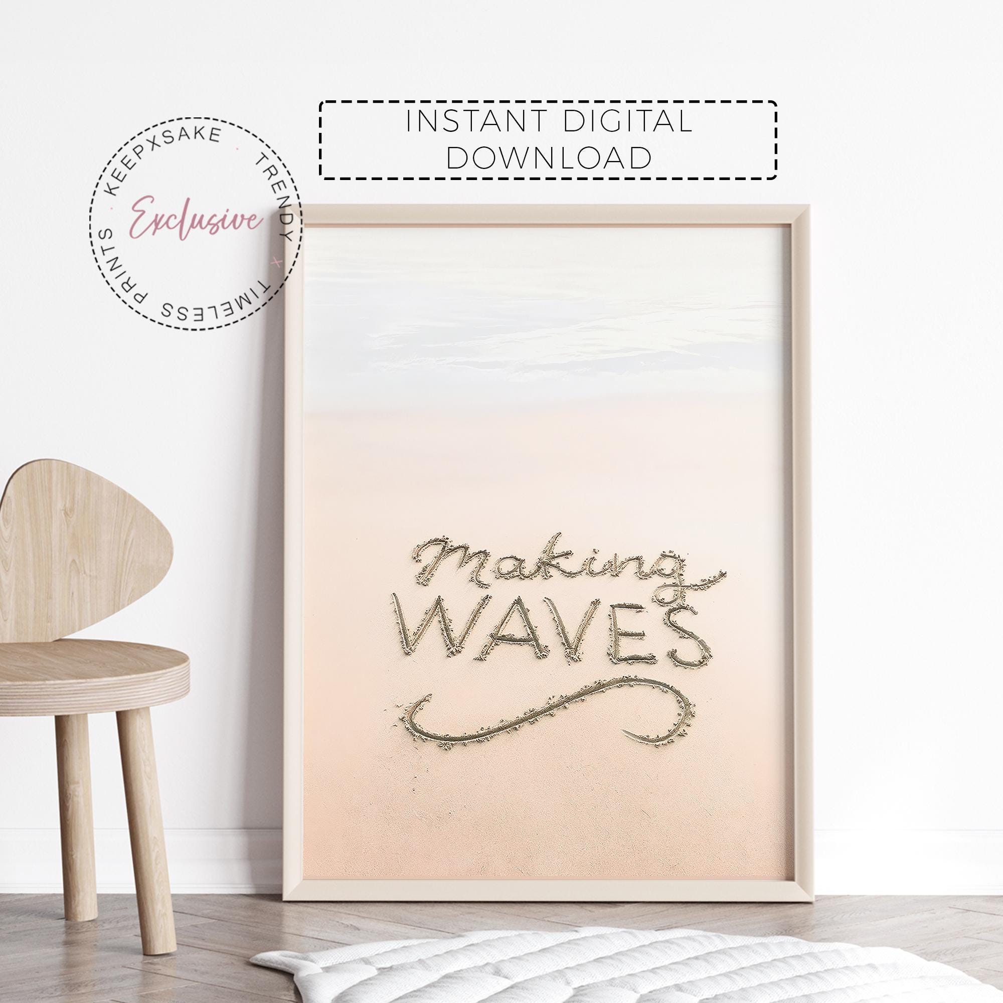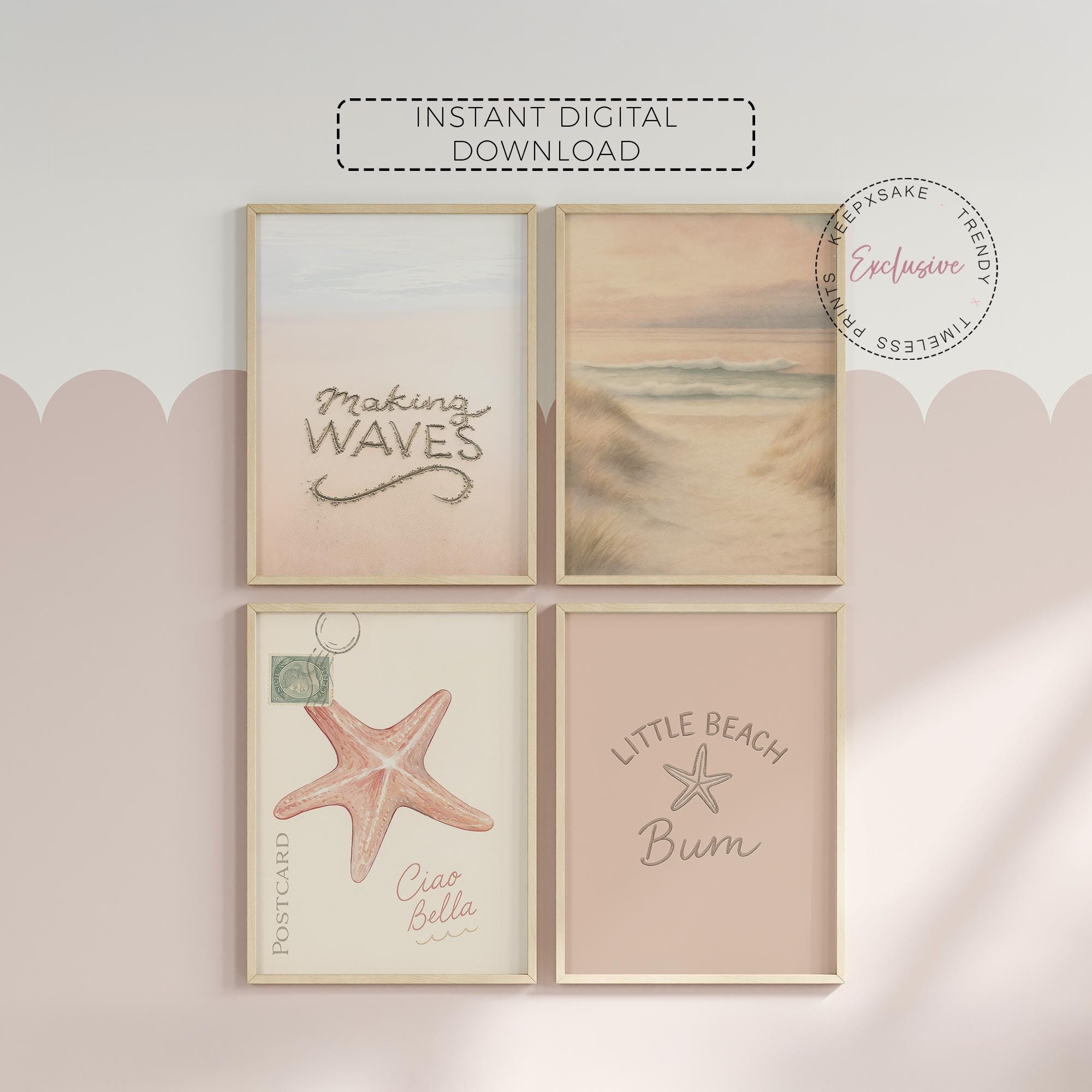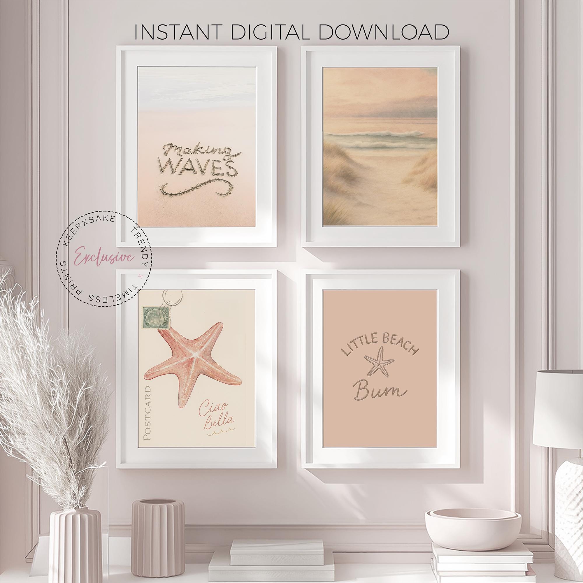 Capture the serenity of the seaside with this Coastal Wall Art Set — a refined collection of four printable designs: Making Waves, Ciao Bella, Little Beach Bum, and Soft Dunes Horizon. Each print combines neutral beach tones, hand-painted textures, and soft, minimal typography — creating a calming coastal aesthetic perfect for nurseries, bedrooms, or beach-inspired interiors.