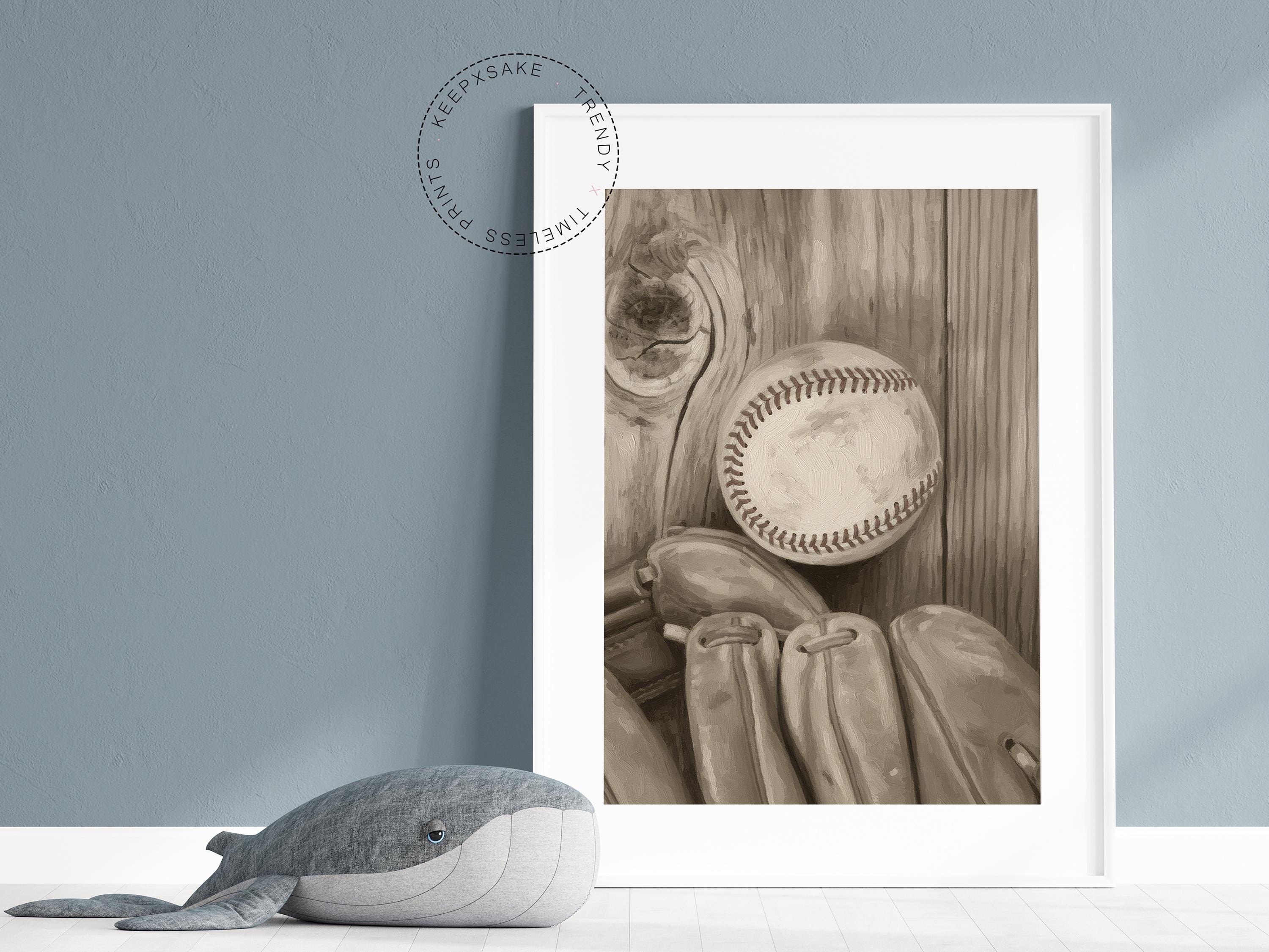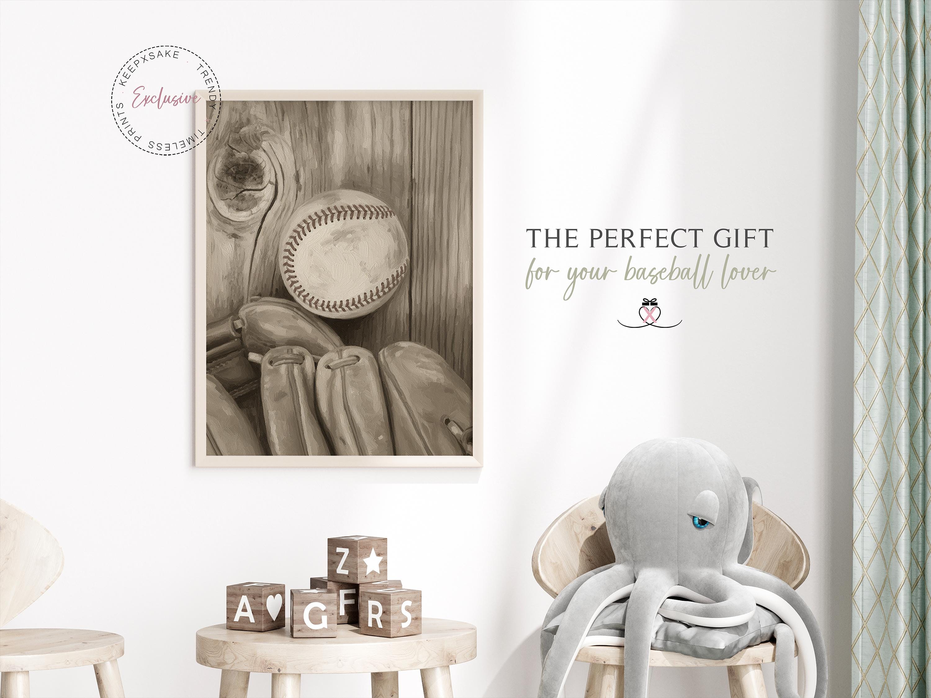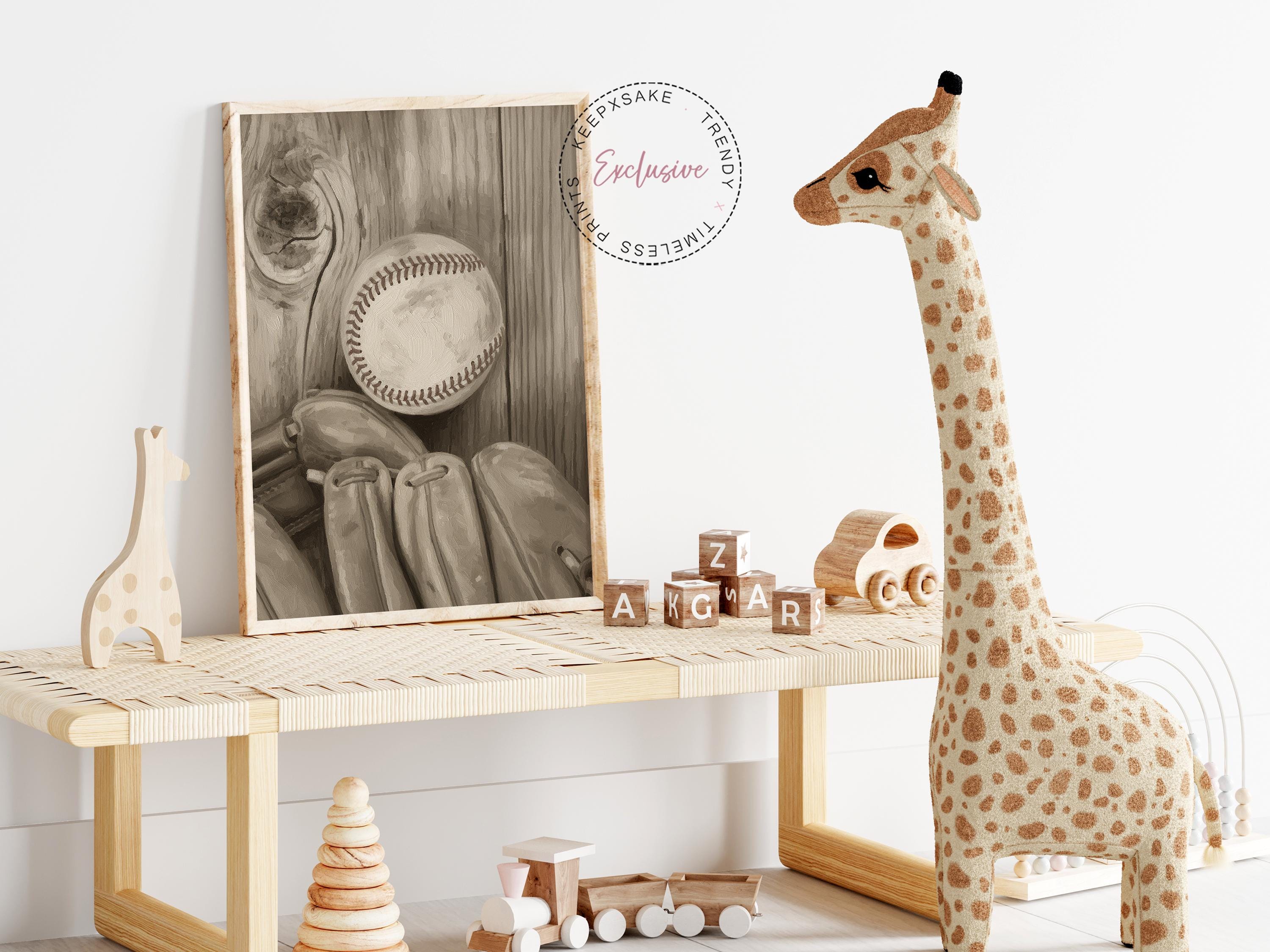 Exclusive a timeless sepia baseball print with a soft watercolor feel — perfect for boys’ rooms, nurseries, and sports-loving homes.