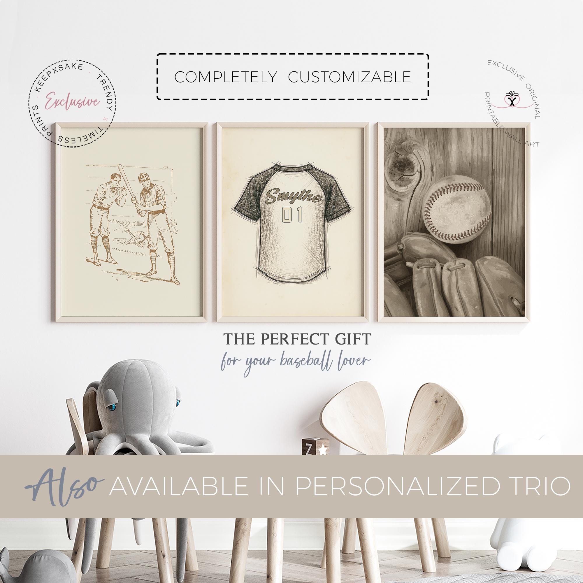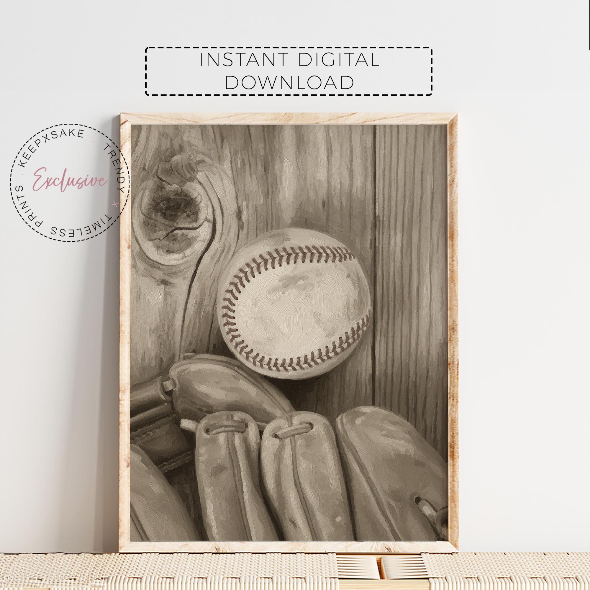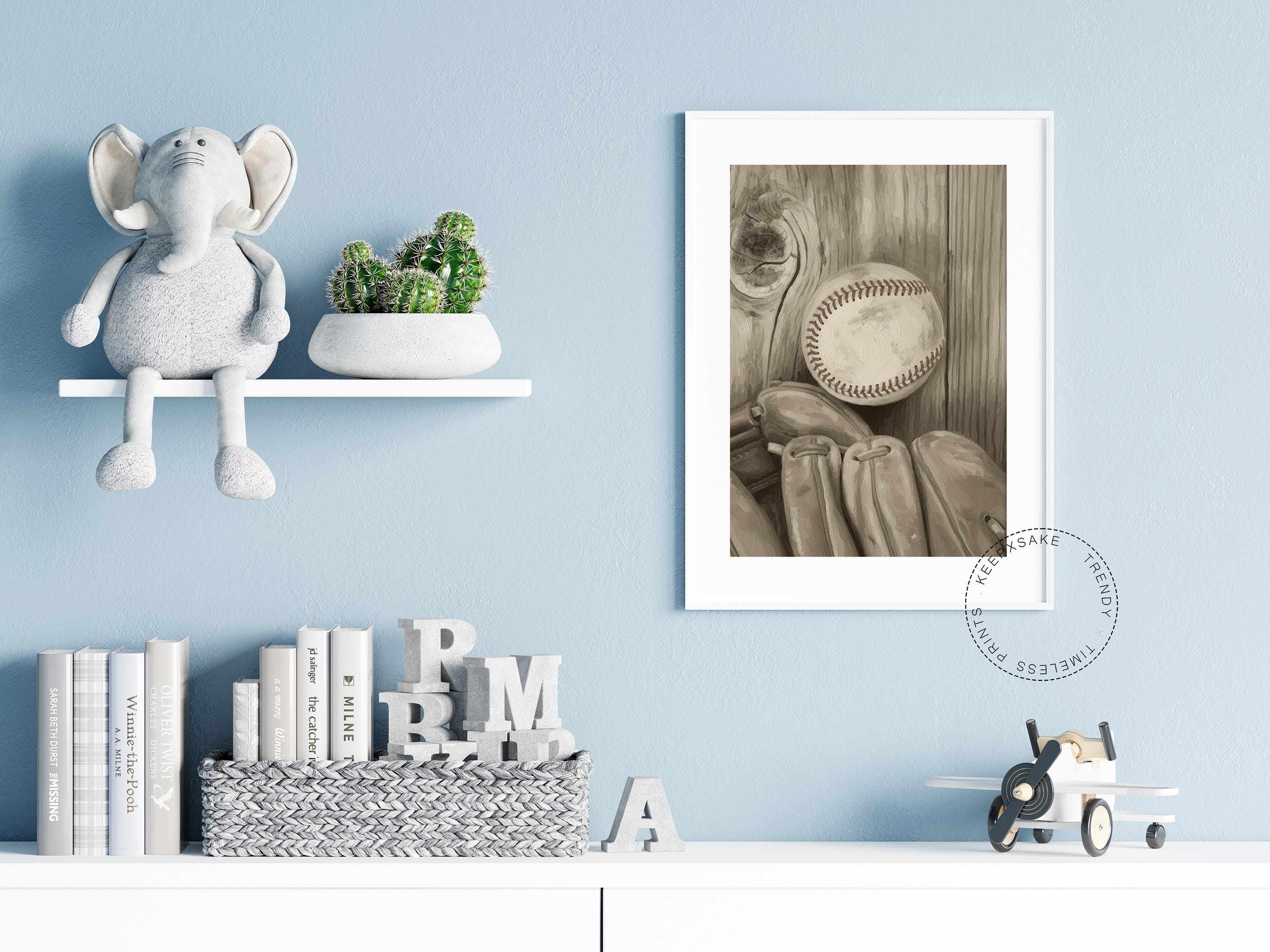 Exclusive a timeless sepia baseball print with a soft watercolor feel — perfect for boys’ rooms, nurseries, and sports-loving homes.