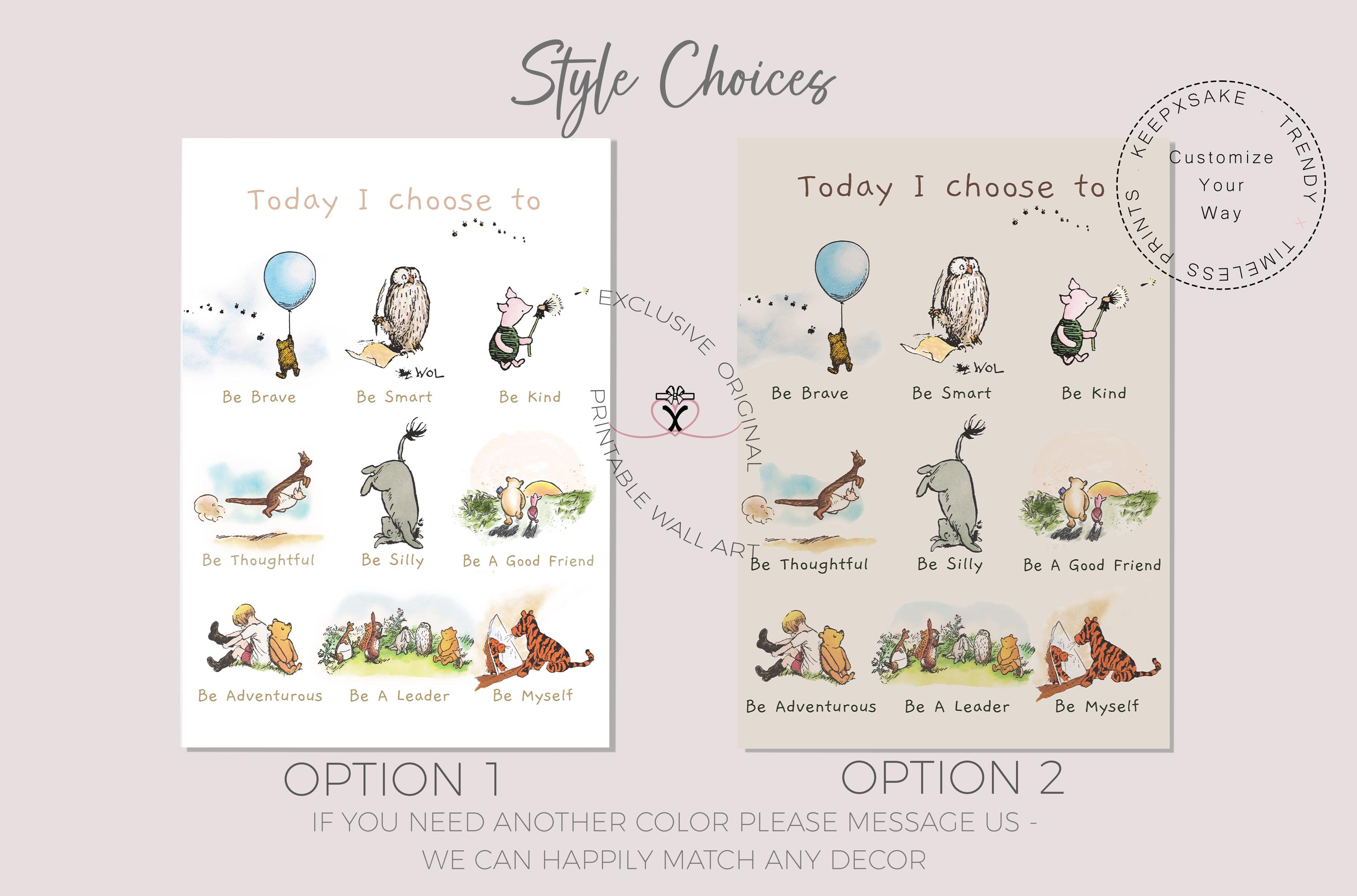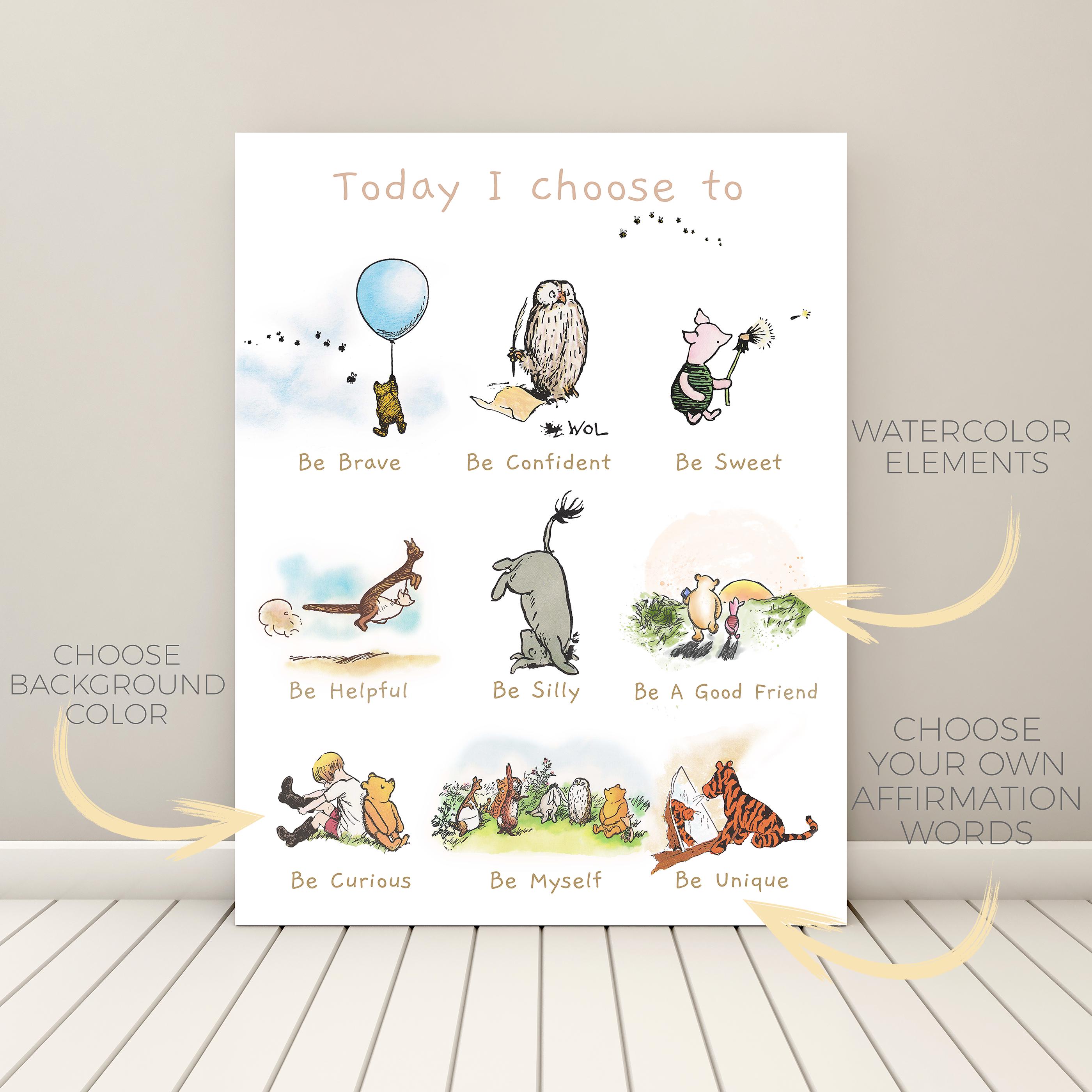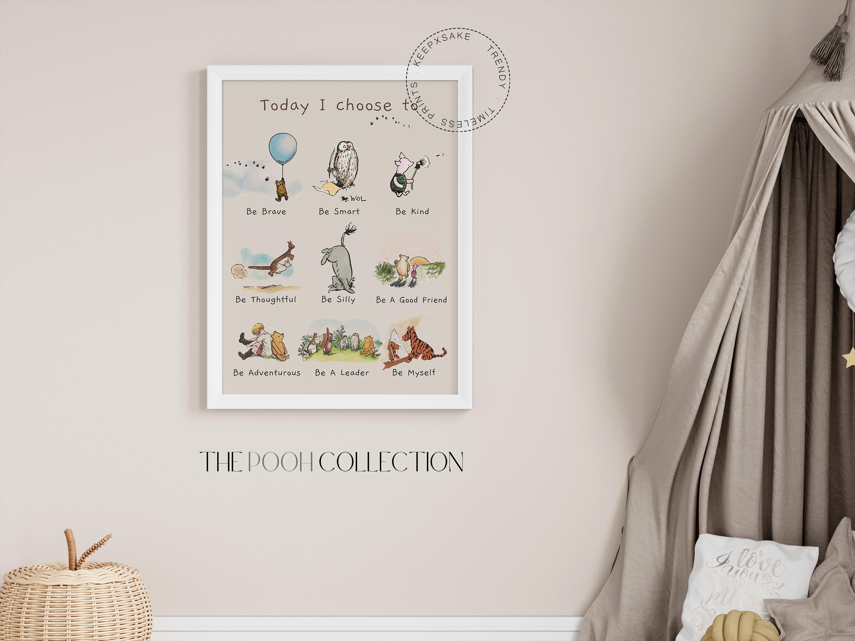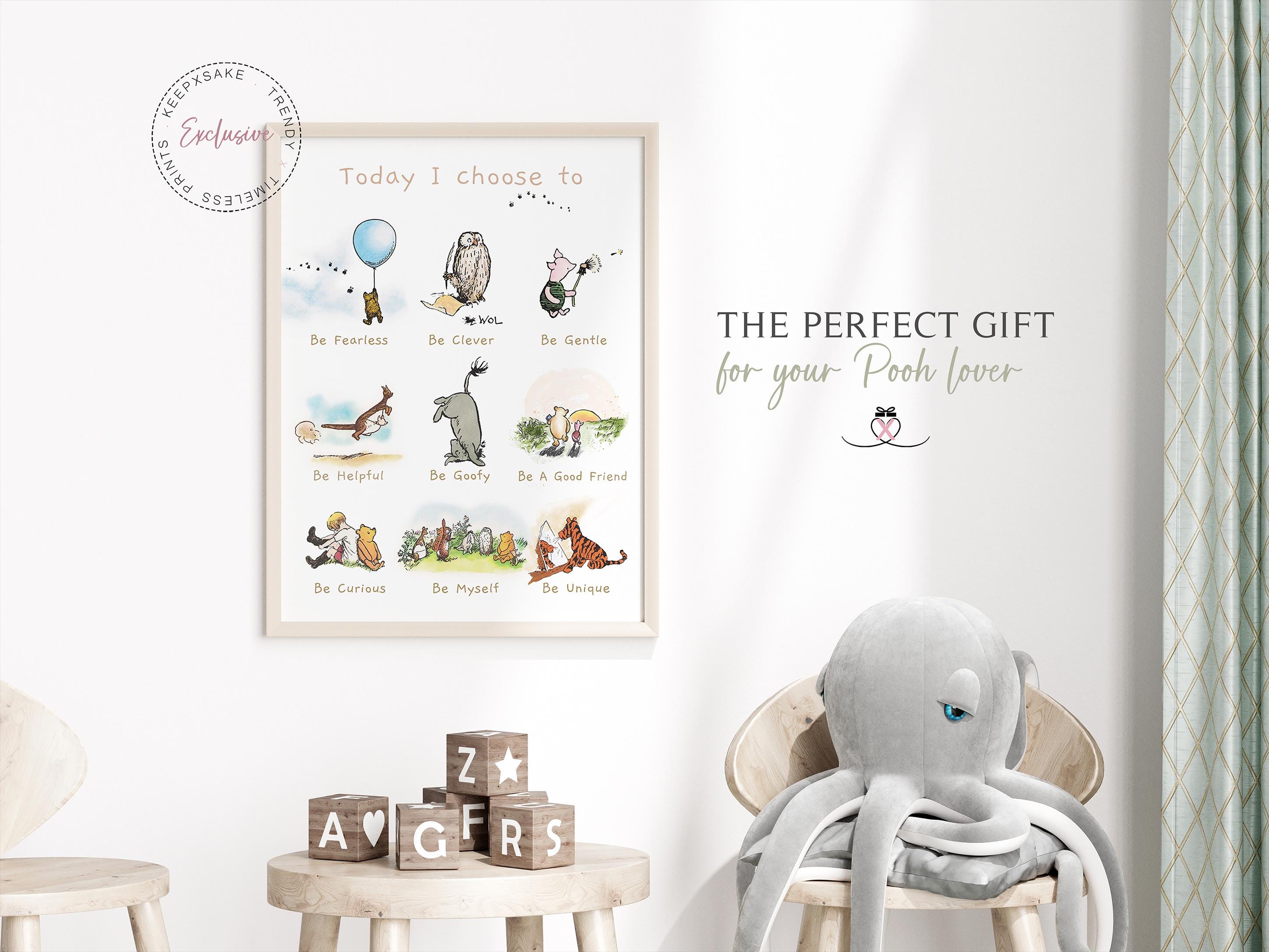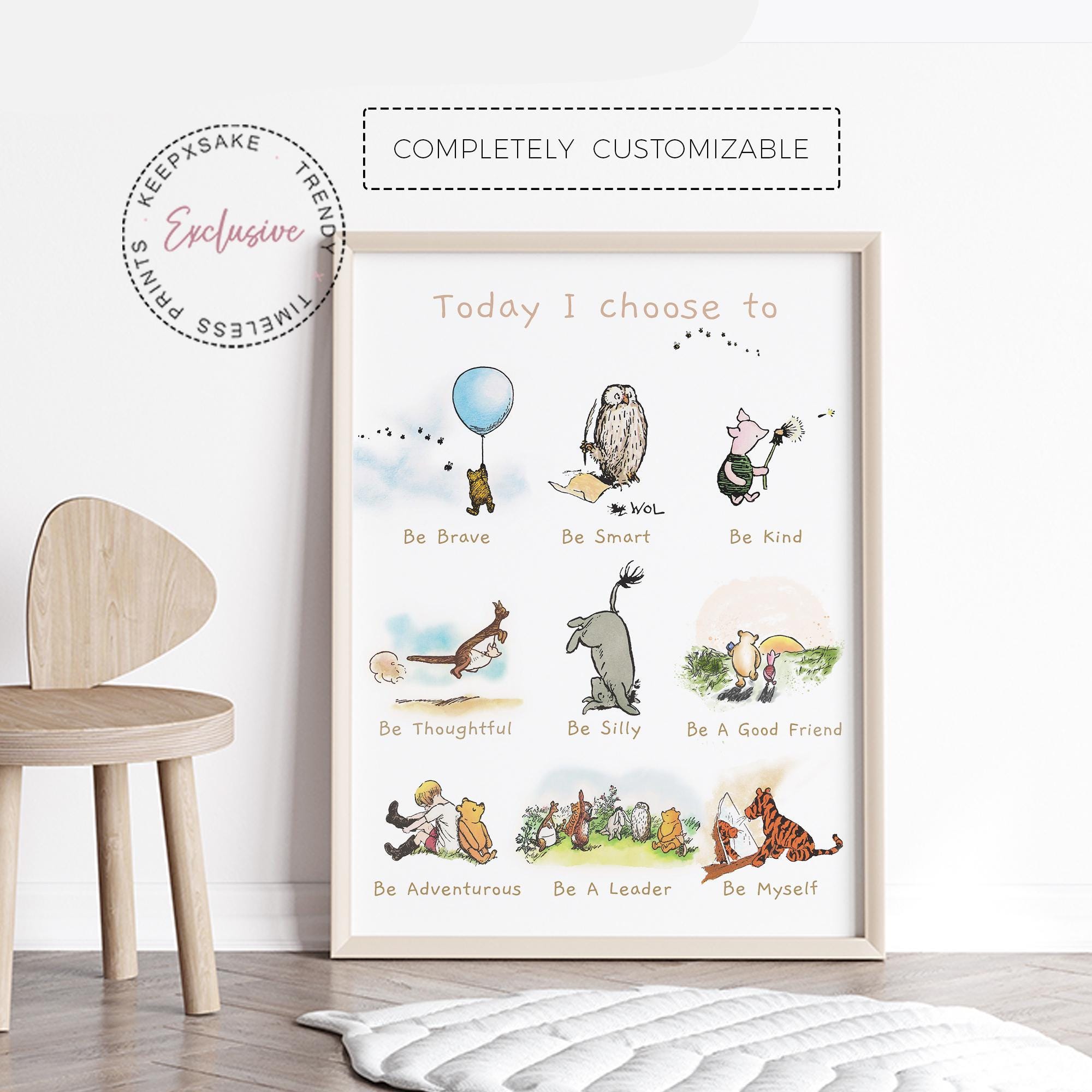 Bring timeless charm and gentle encouragement into your child’s room with this Classic Pooh “Today I Choose To Be” Affirmation Print — a soft, vintage-style illustration that promotes confidence, kindness, bravery, and positive self-belief. Each affirmation can be fully customized, making this a meaningful keepsake that grows with your child. Choose different words, swap characters, or request your own personalized list — every print is designed exclusively for your home with our signature KEEPxSAKE aesthetic. Perfect for nurseries, toddler rooms, playrooms, or classrooms, this piece blends emotional warmth with a clean, modern design that parents love. A thoughtful gift for birthdays, baby showers, or new parents who adore classic storybook art.