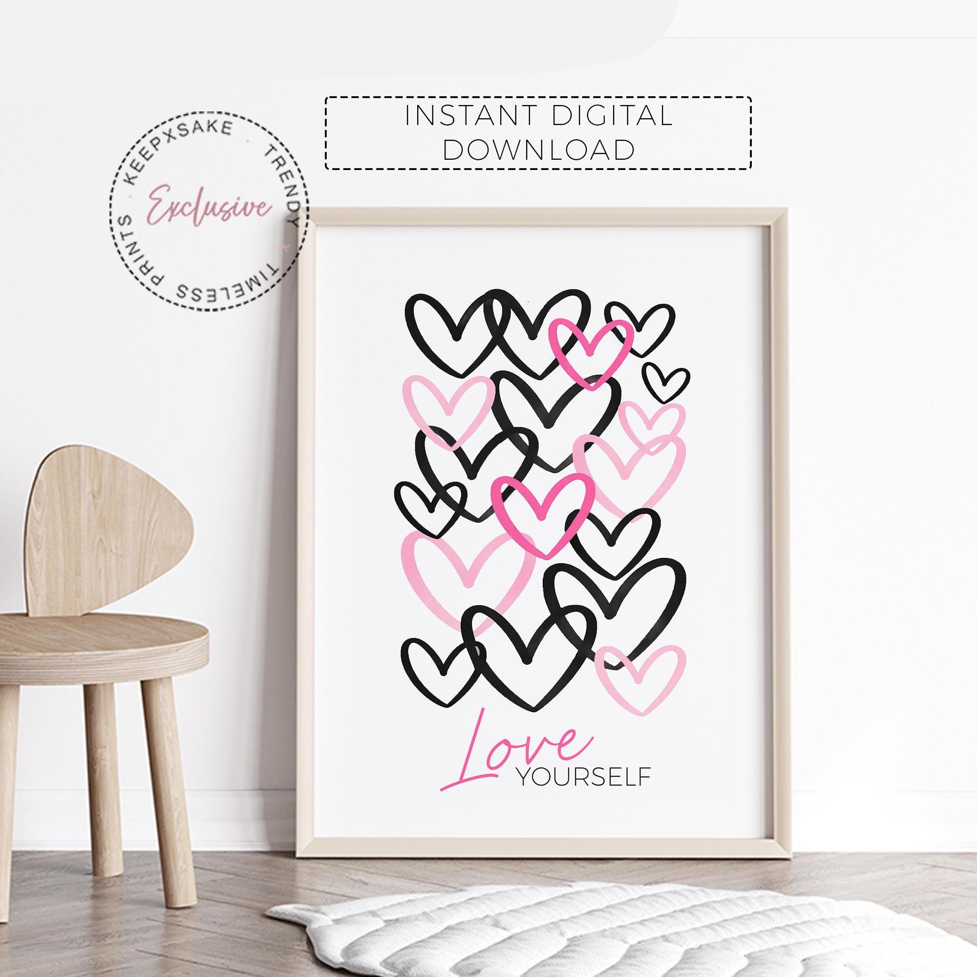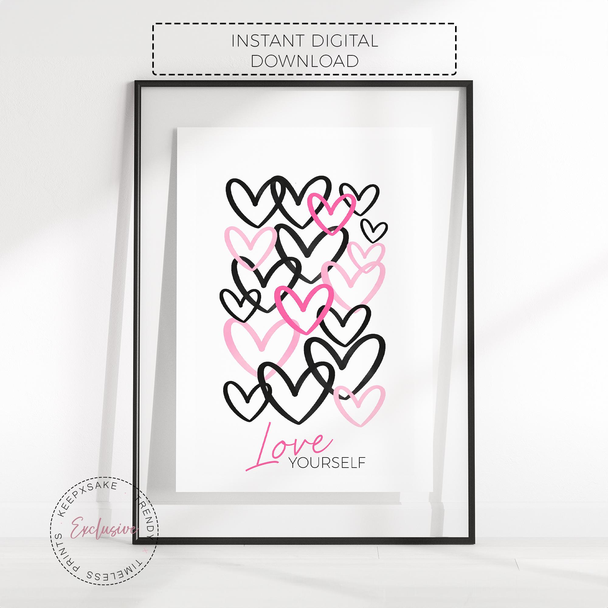 Encourage confidence, self-love, and positivity with this “Love Yourself” heart wall art print, designed especially for girls, tweens, and teens.
