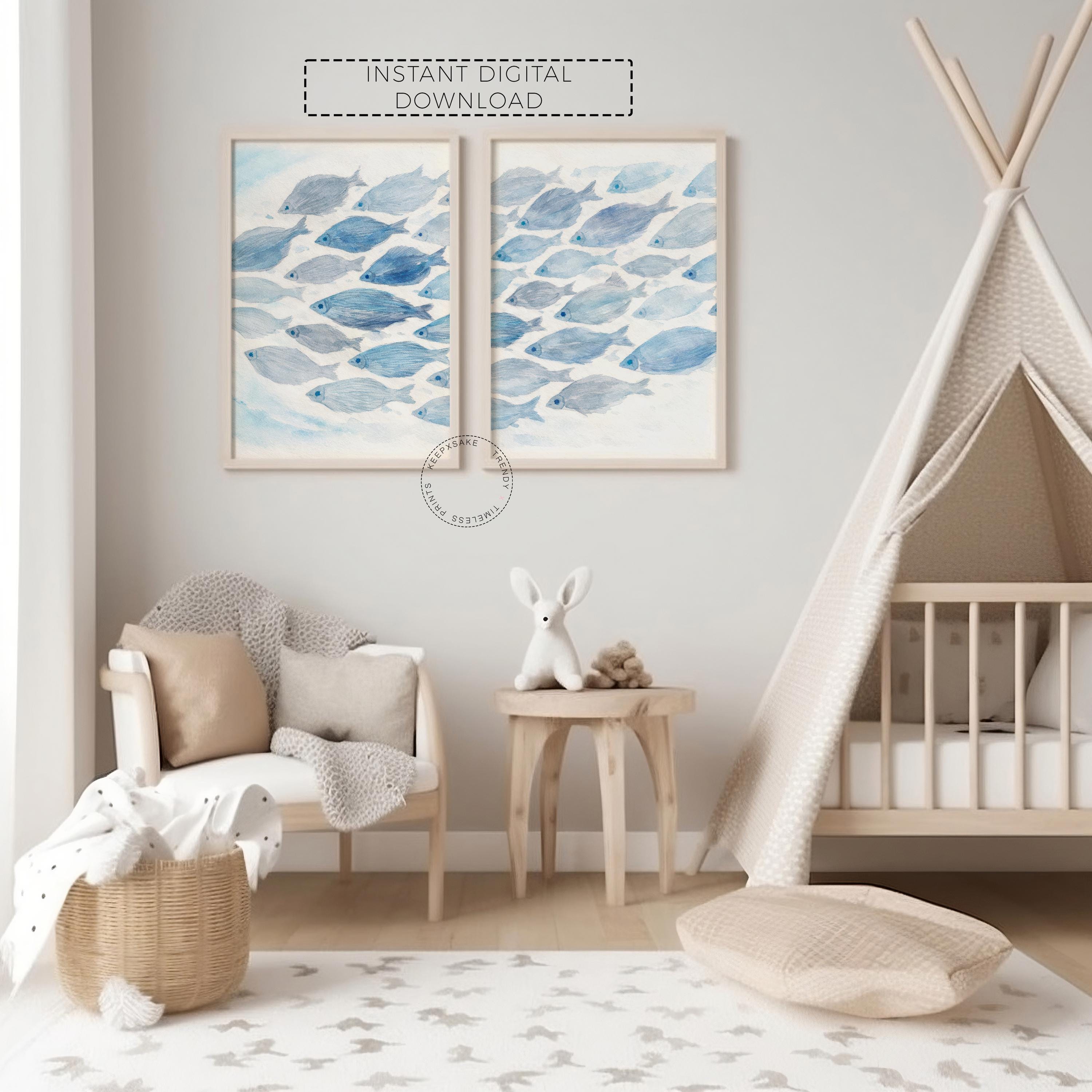 Designed in gentle coastal tones with a hand-painted watercolor feel, this printable nursery art is perfect for baby boys, gender-neutral nurseries, coastal themes, and modern minimal spaces. The flowing fish artwork adds movement and serenity, while the typography keeps the look timeless and sweet. Ideal for above a crib, dresser, or reading nook, this set works beautifully in nurseries, toddlers’ rooms, playrooms, and beach-inspired interiors. 💗