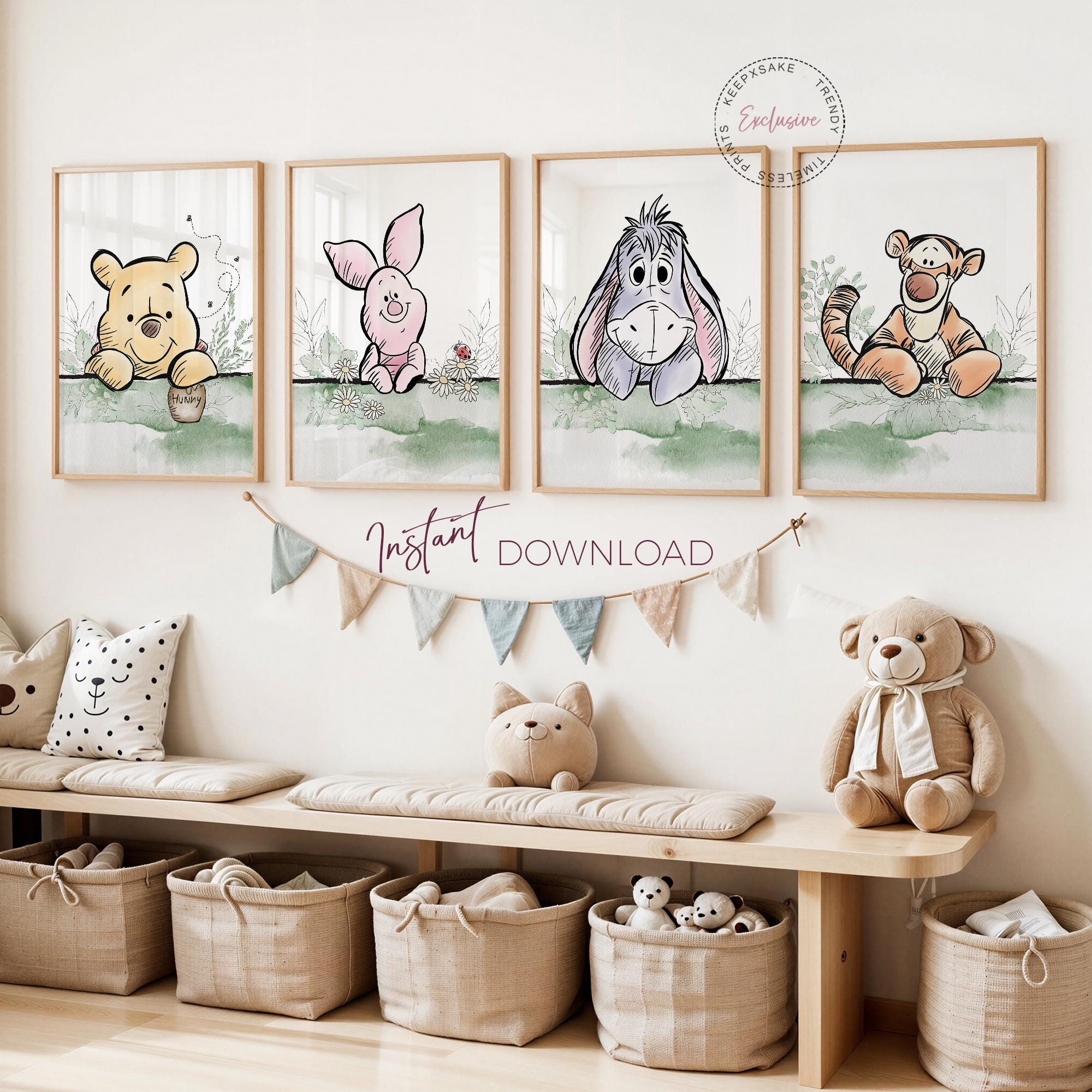 Transform any nursery, baby room, or kidsâ space into a cozy, joyful haven with this Winnie the Pooh Friends Wall Art Set â perfect for parents, gift-givers, and lovers of timeless Disney charm.