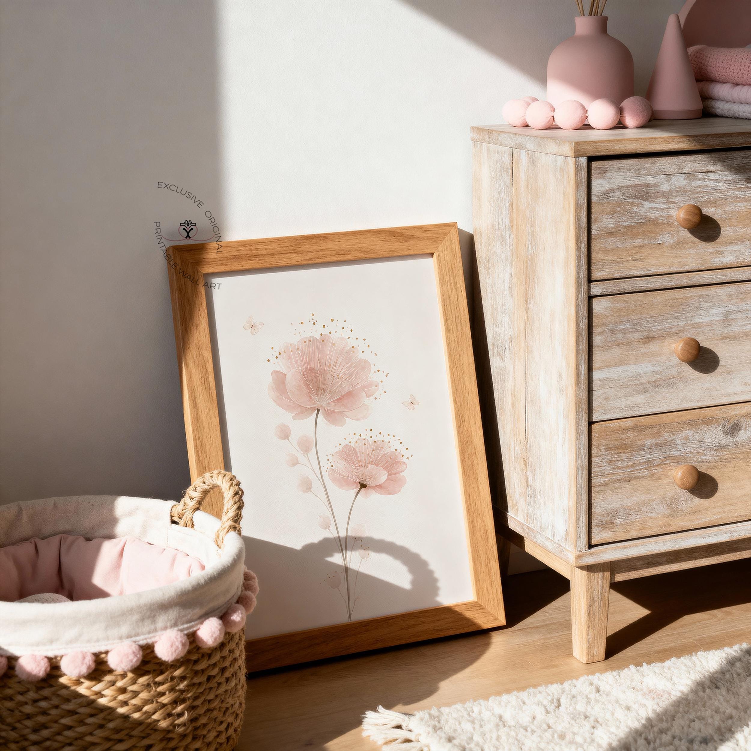 Bring a soft, storybook feel to your child’s space with this blush pink watercolor butterfly flower wall art. Designed in your signature hand-painted style, this artwork adds warmth, charm, and a gentle feminine touch — perfect for a nursery, toddler room, or young girl’s bedroom.