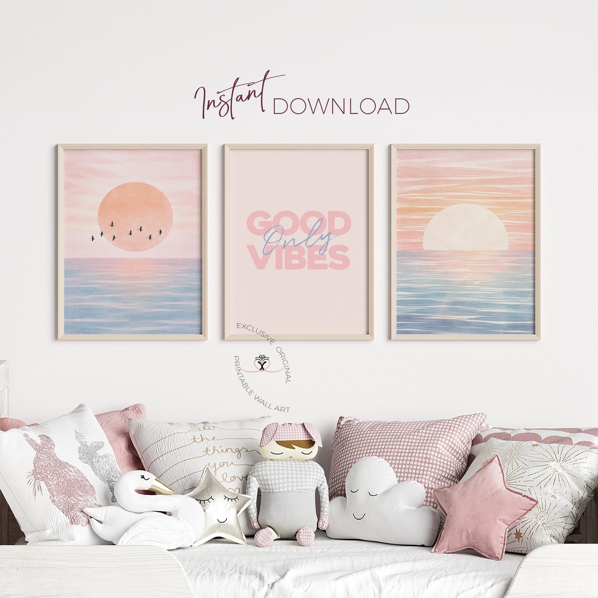Exclusive Good vibes only ✨ Soft pink coastal prints for calm, aesthetic teen spaces
