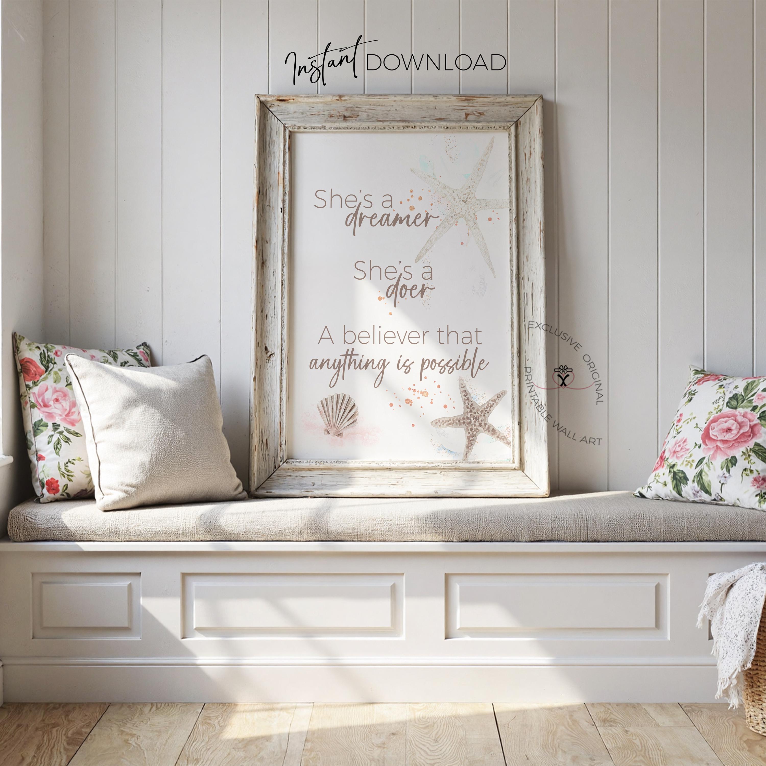 Exclusive soft, inspiring quote print for girls who dream big đź’• Perfect for pre-teen bedrooms and coastal-inspired spaces.