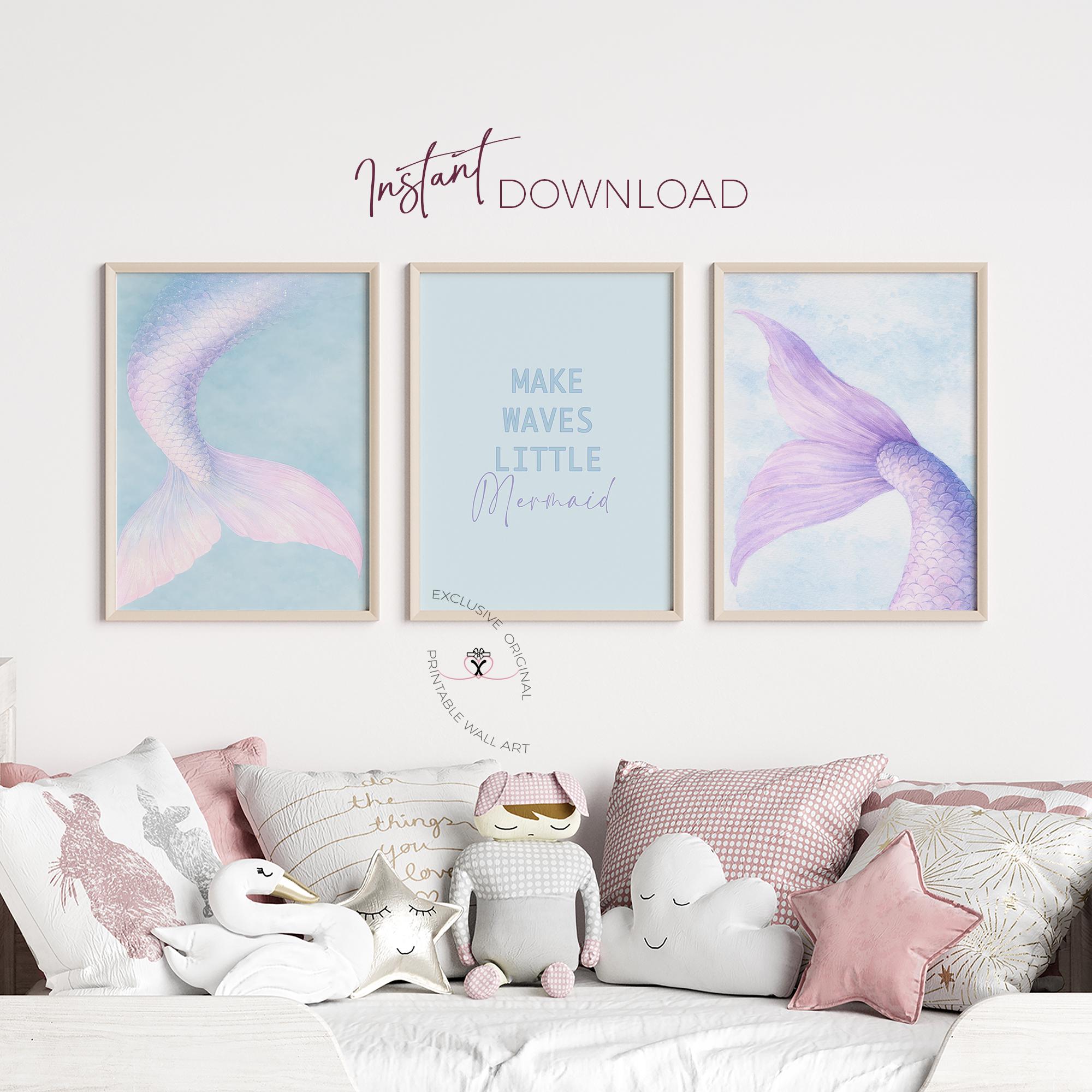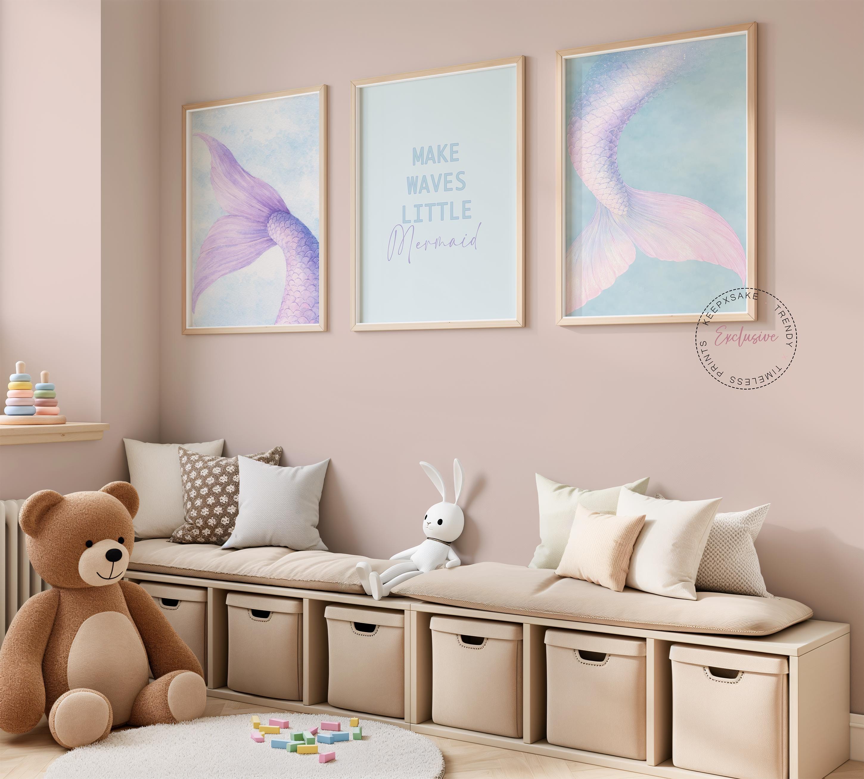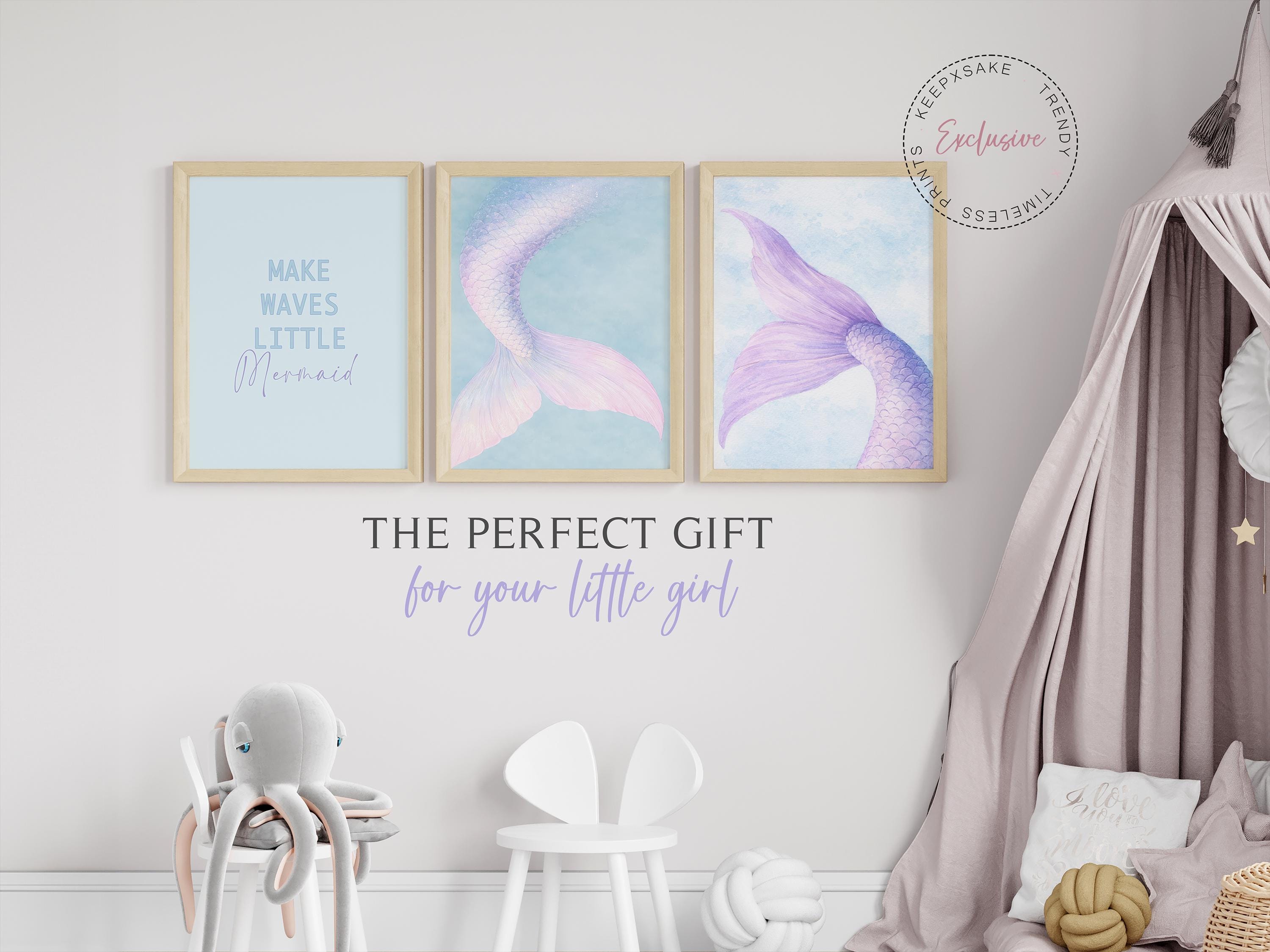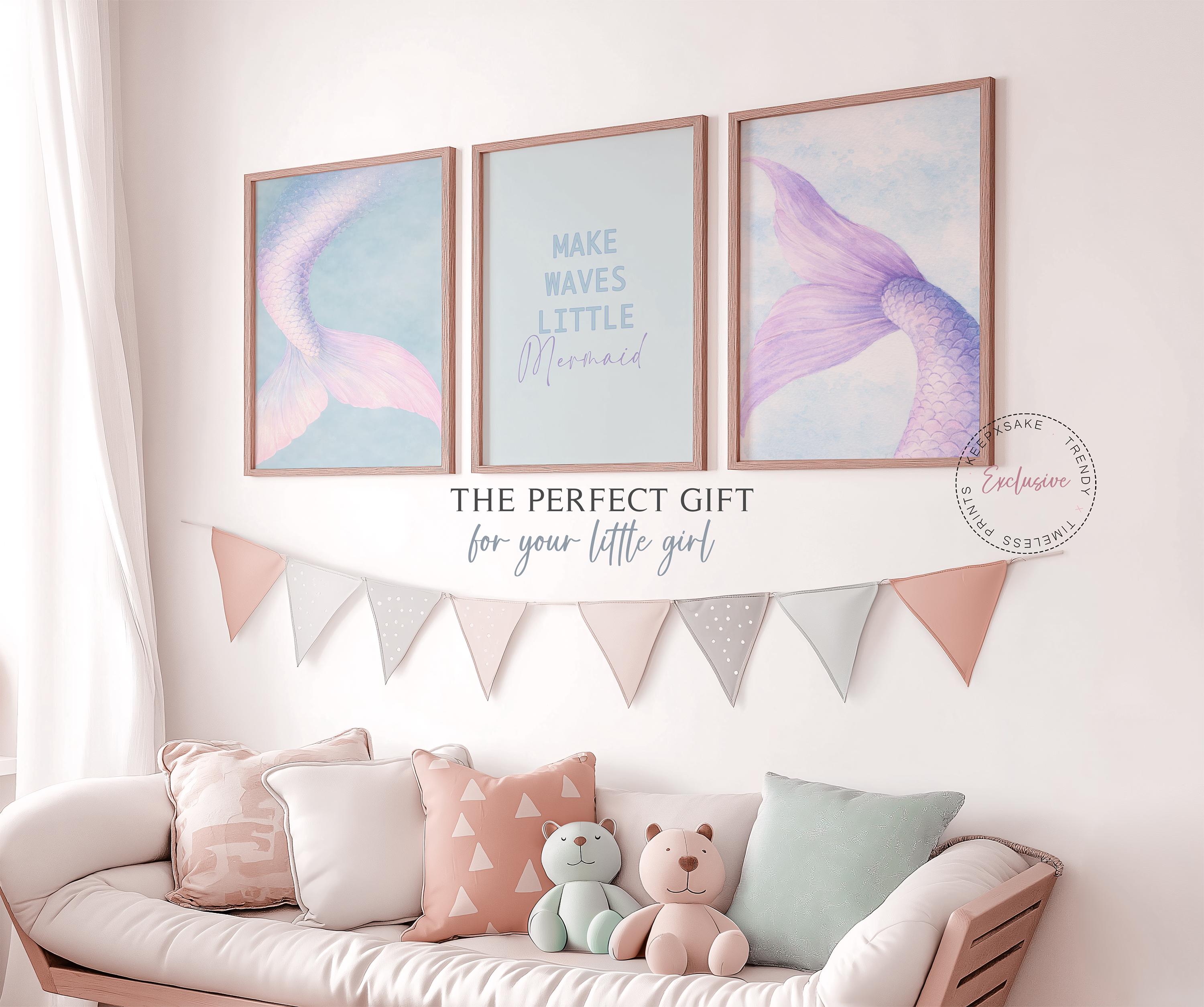 Exclusive soft pastel mermaid trio perfect for pre-teen & teen girls room