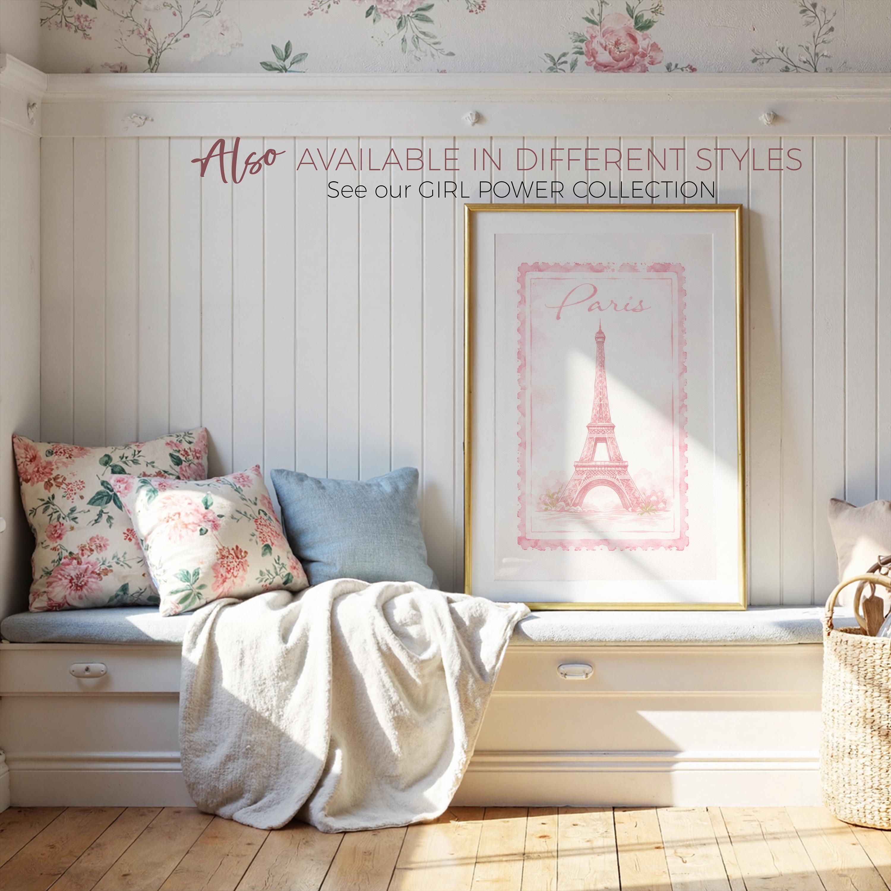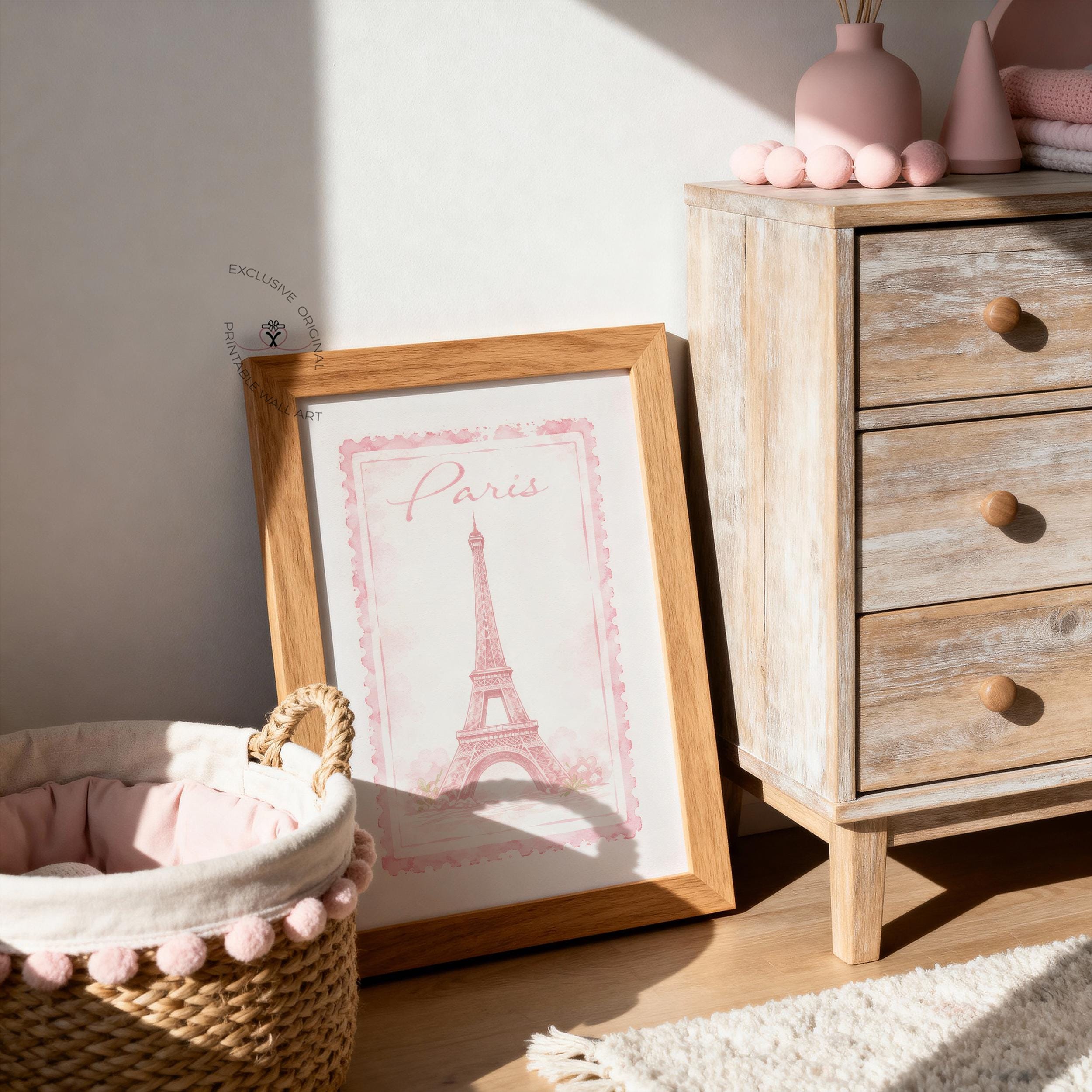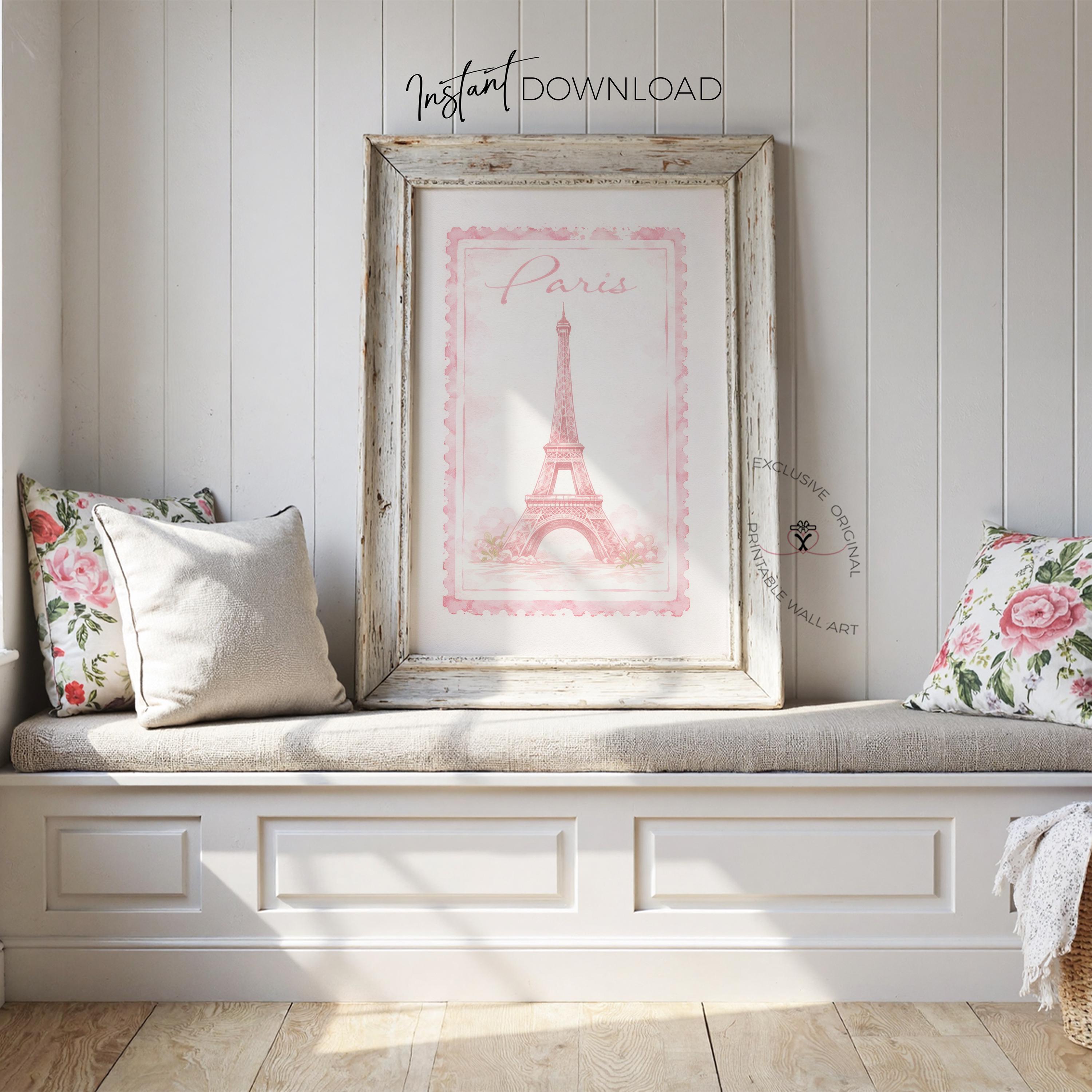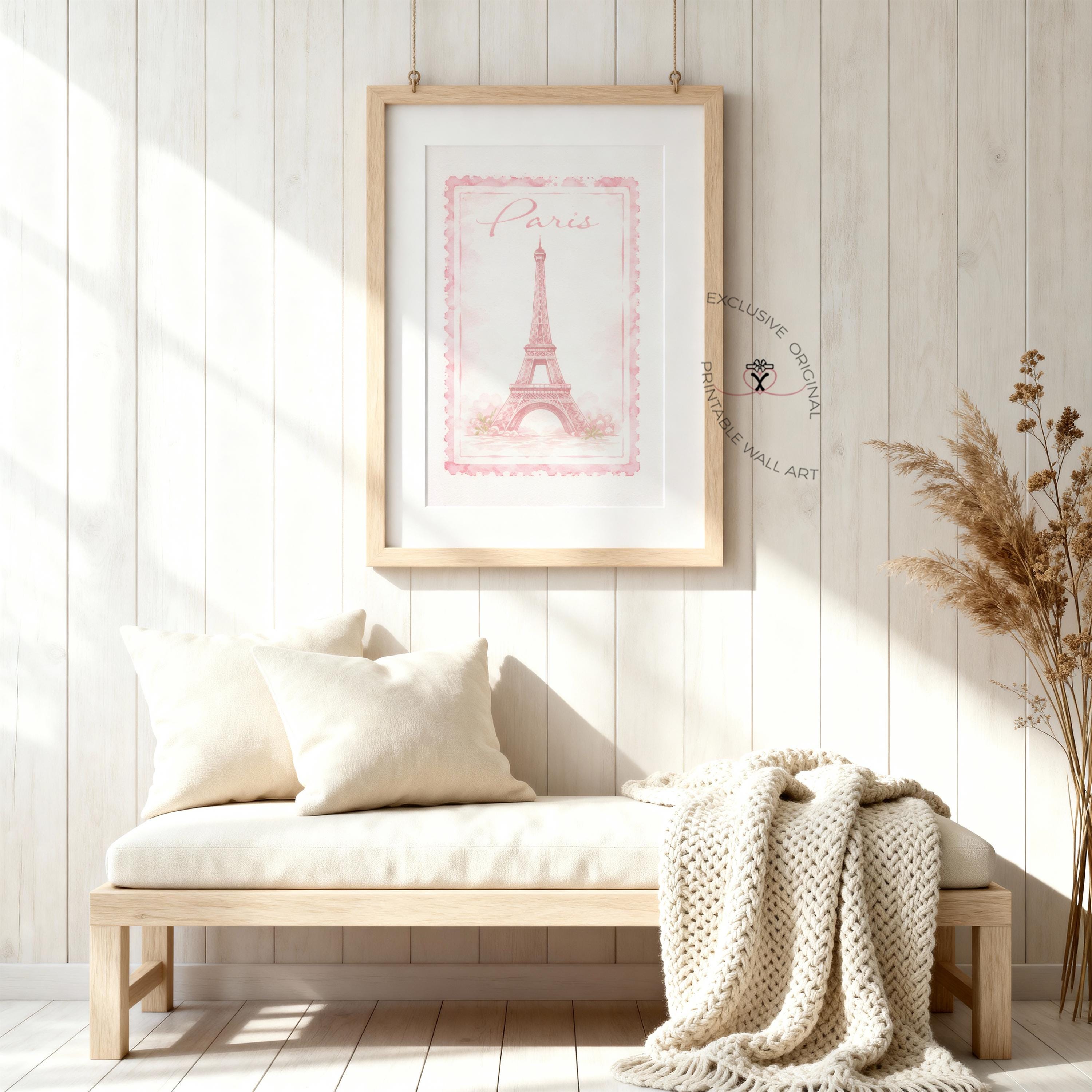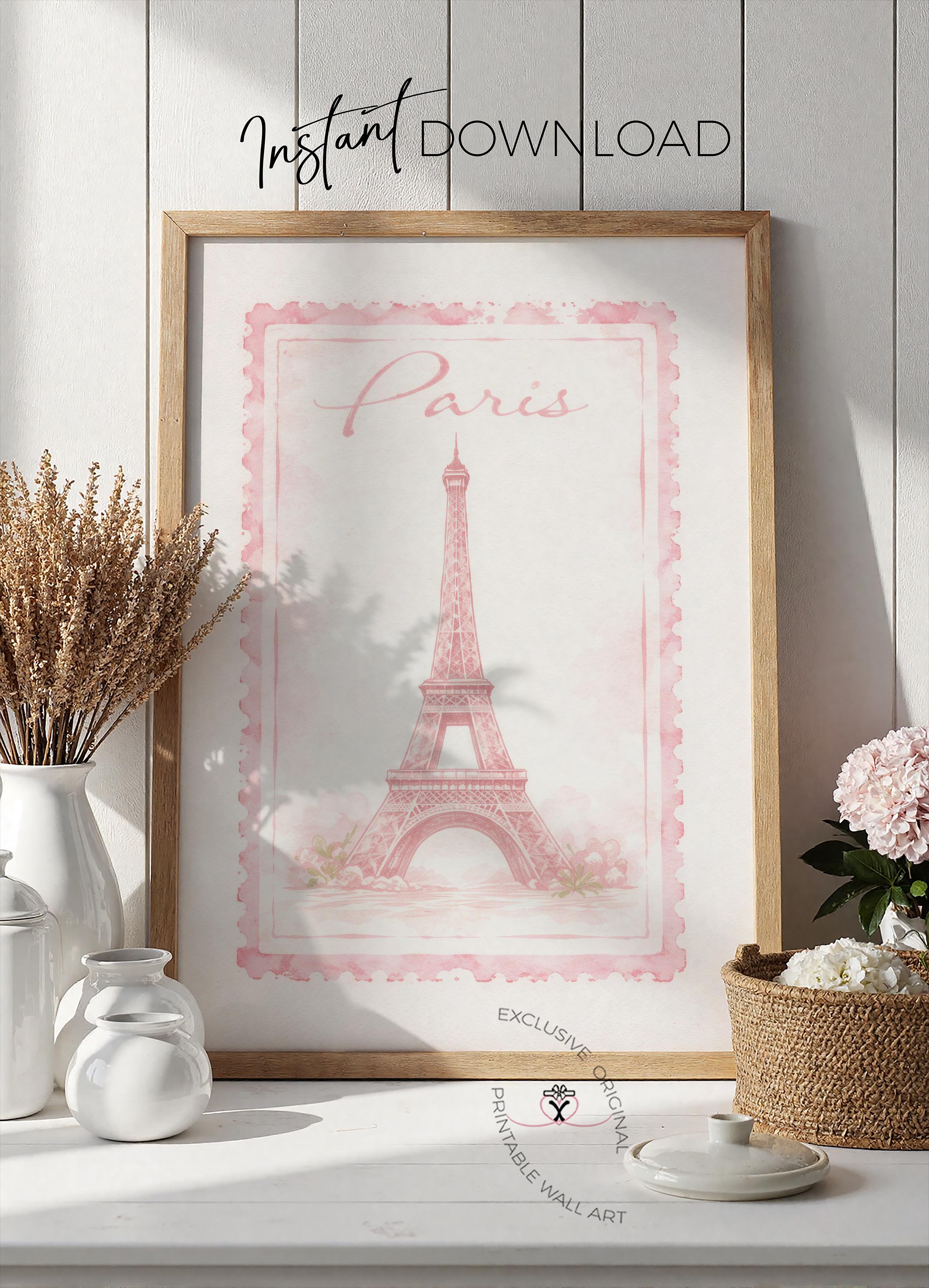 Bring a touch of Parisian charm into your home with this beautifully soft Eiffel Tower art print, designed in a delicate vintage stamp style. With its blush pink tones, hand-painted texture, and romantic “Paris” script, this piece captures that effortless, dreamy feeling of strolling through quiet Paris streets — soft, calm, and full of charm.